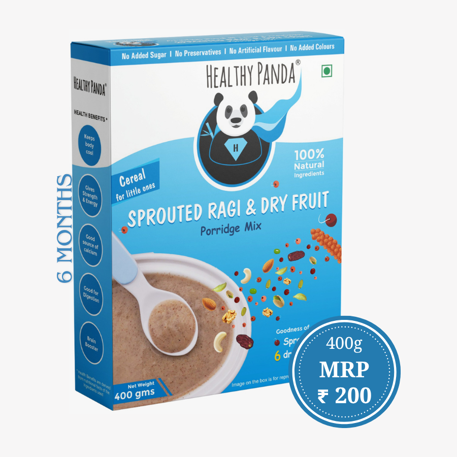 Support your child's growth with Sprouted Ragi & Dry Fruit Porridge Mix by Healthy Panda! Made with nutrient-rich sprouted ragi and dry fruits, this wholesome and easy-to-digest mix is perfect for a healthy and nourishing start to the day.