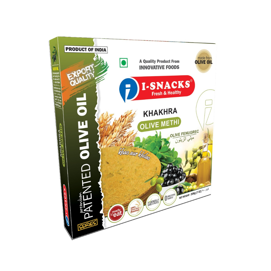 Enjoy a unique fusion of flavors with Olive Methi Flavor Khakhra by iSnax! Infused with the richness of olives and the goodness of fenugreek, this crispy and healthy snack is perfect for a delicious and guilt-free treat.