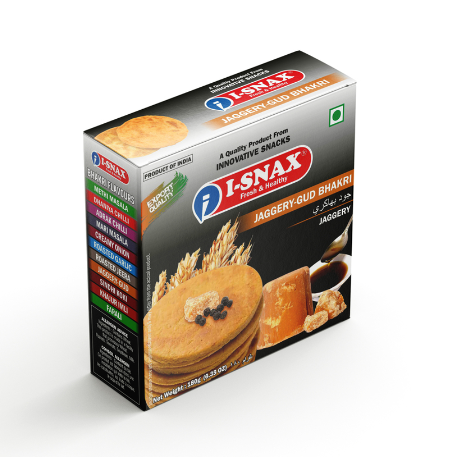 Indulge in the natural sweetness of Jaggery Gud Bhakhri by iSnax! Made with pure jaggery, this crispy and wholesome snack offers a perfect balance of taste and health for guilt-free enjoyment anytime.