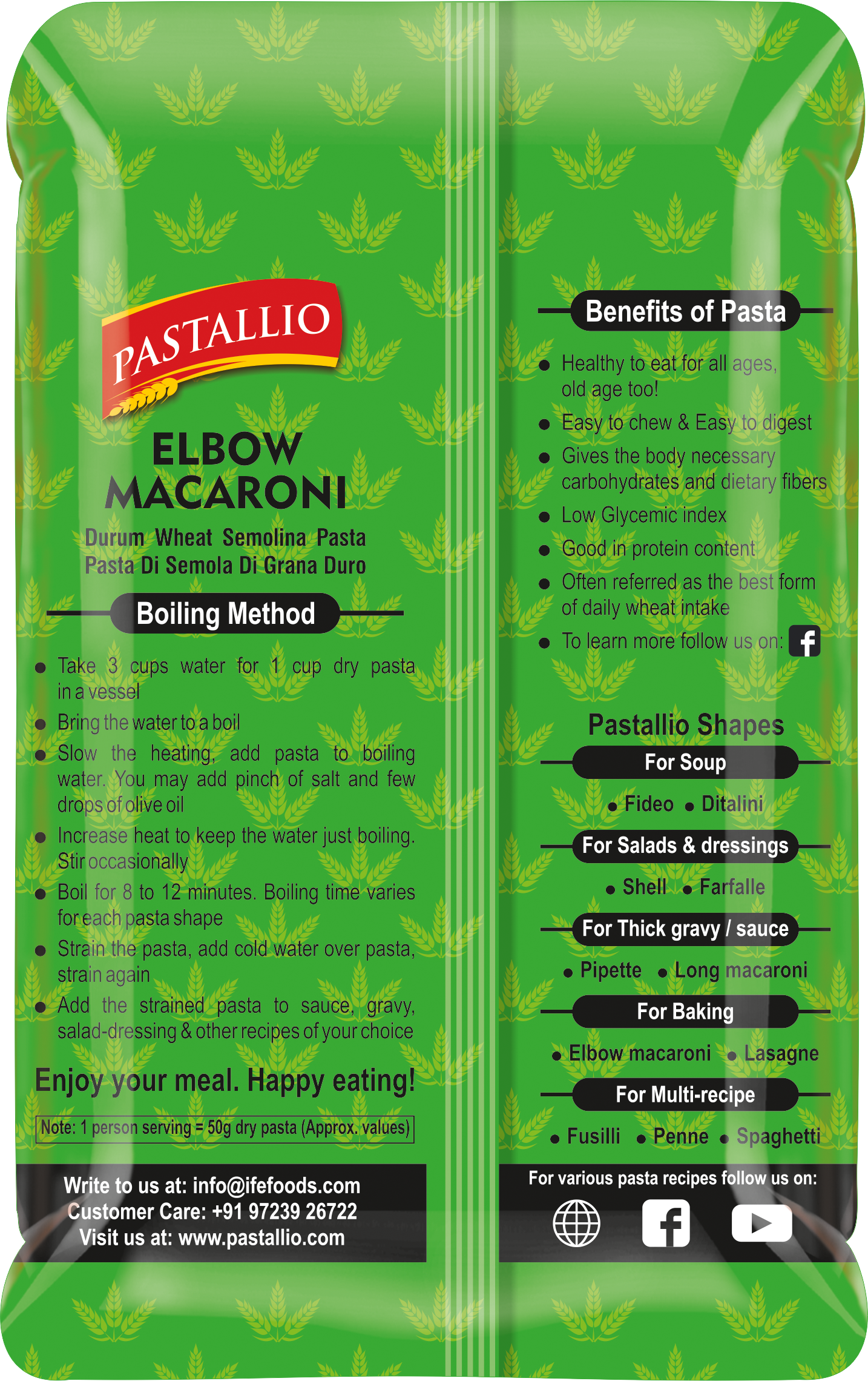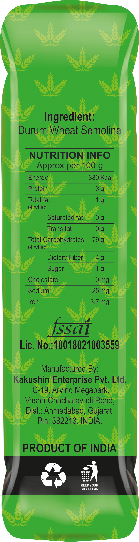 - 100% Durum Wheat Semolina – No maida, no artificial additives. Pure, healthy, vegetarian pasta