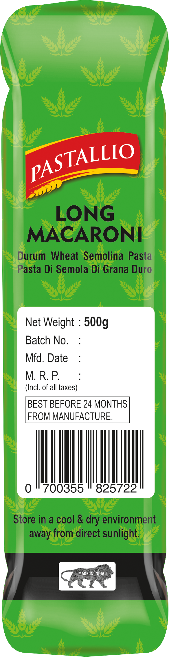 Pastallio Long Macaroni Rigati Pasta – 100% Durum Wheat Semolina | No Maida | No Additives | High in Protein & Fibre – 2 Packs of 500g (1kg Total)